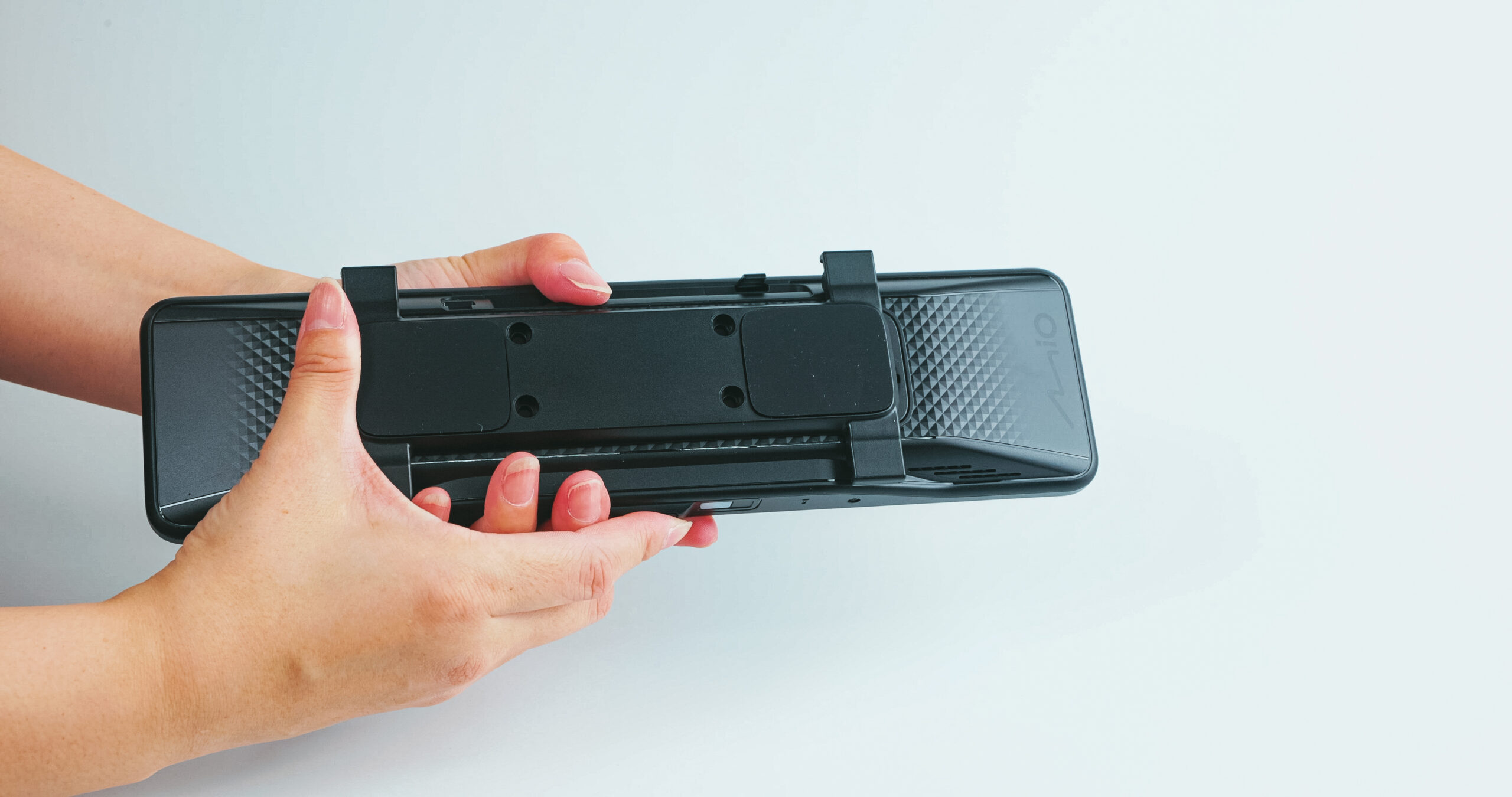 まずは本体に、車両ミラーと固定するための取り付けマウントを装着。