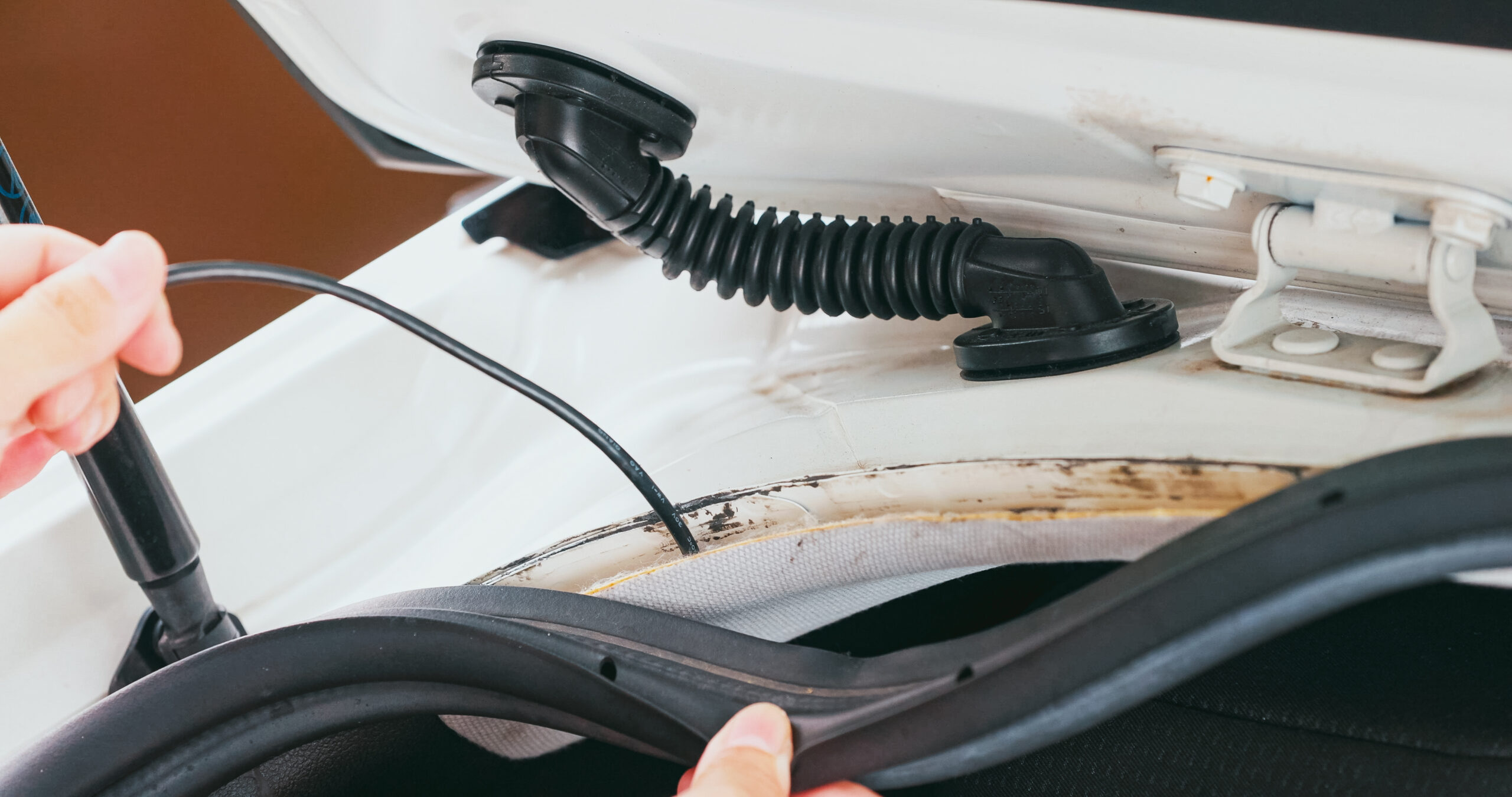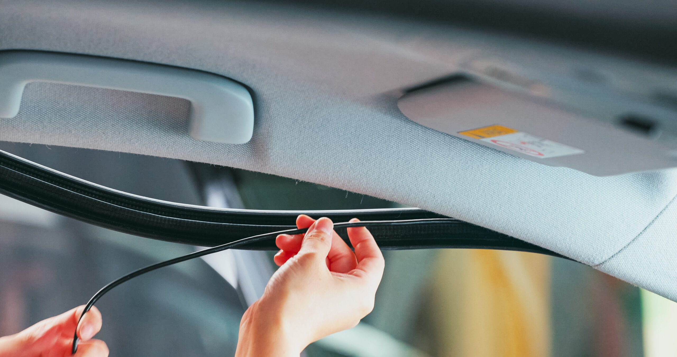 そこでおすすめなのが、ウェザーストリップを外してルーフライニングに軽く入れるだけの方法。