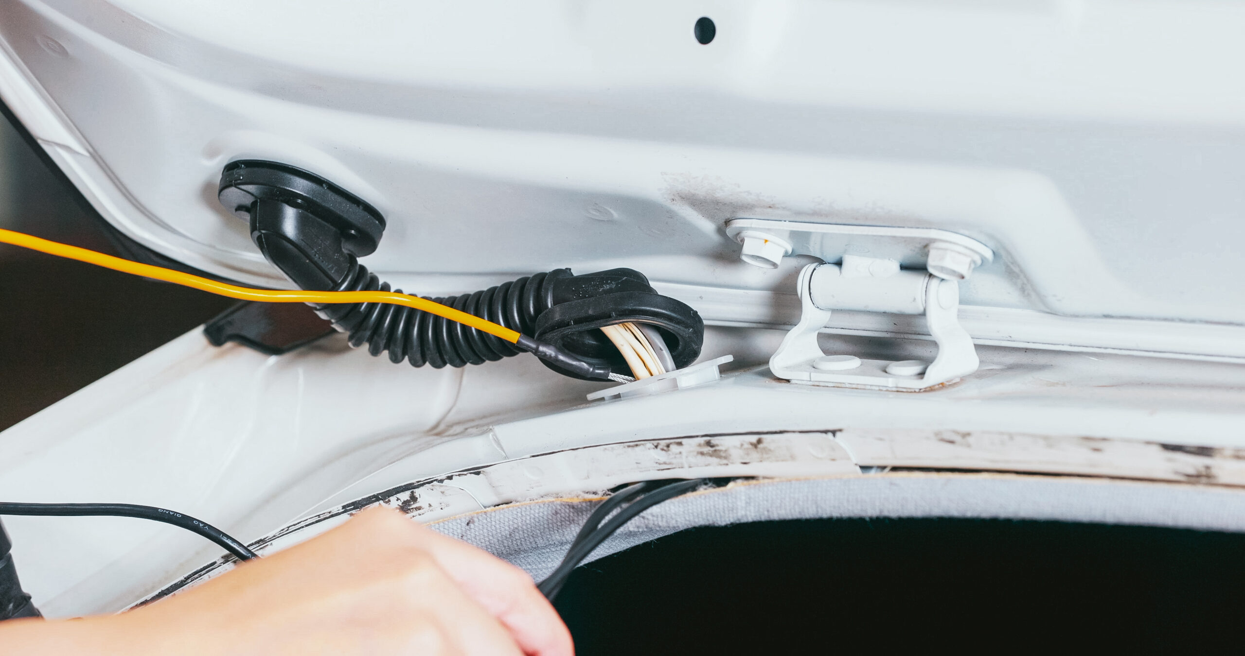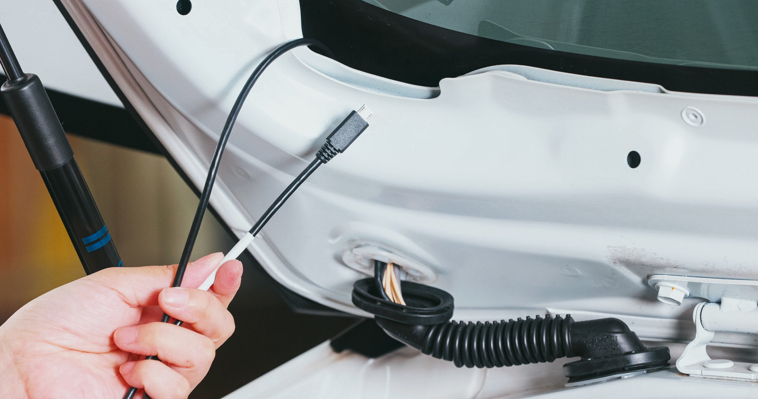 難しいイメージがある車内からリアゲートまでの配線取り回し。