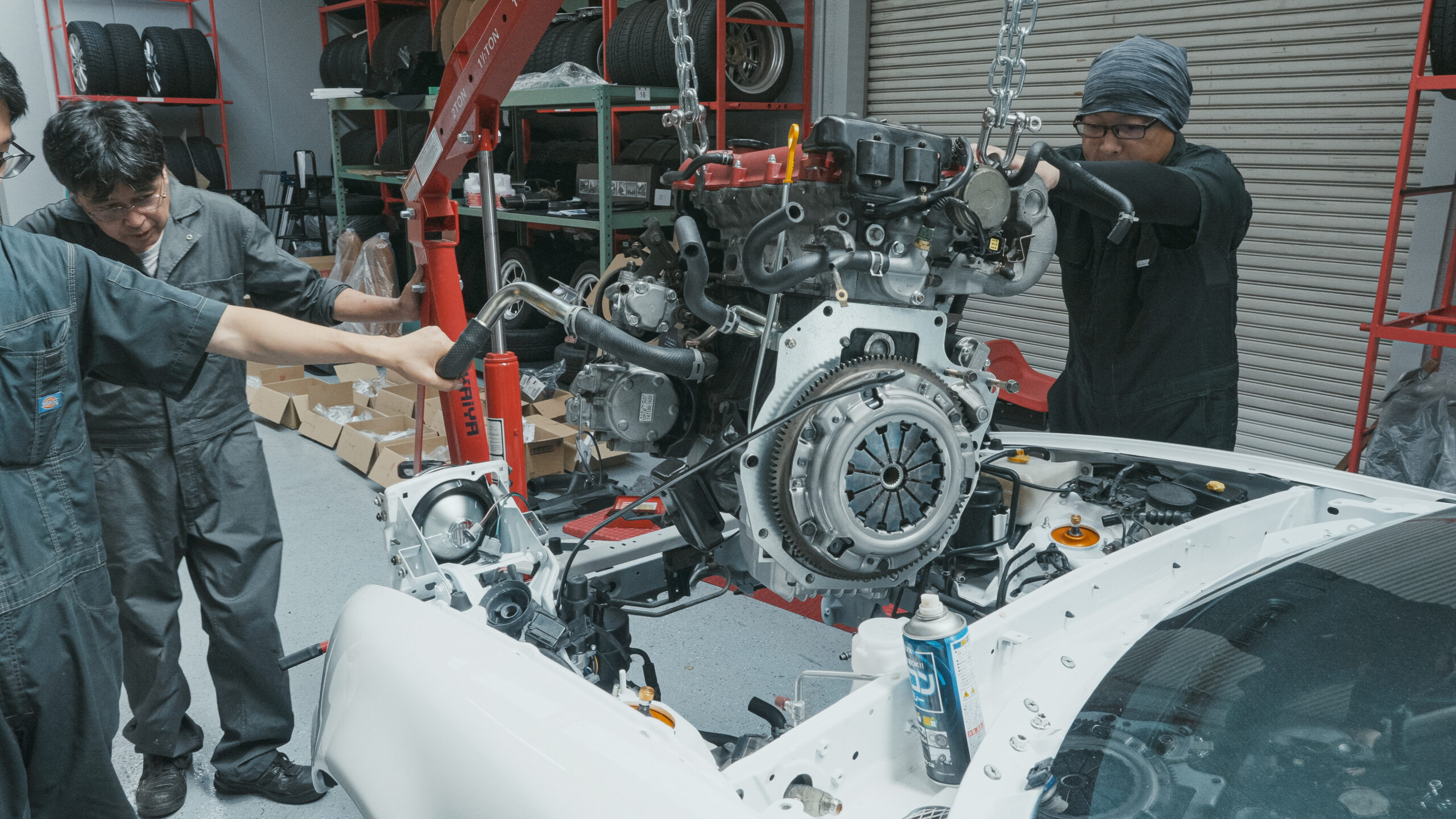 慣れない作業に戸惑いながらも、手を取り合ってエンジンをばらし、磨き、組み立てて。